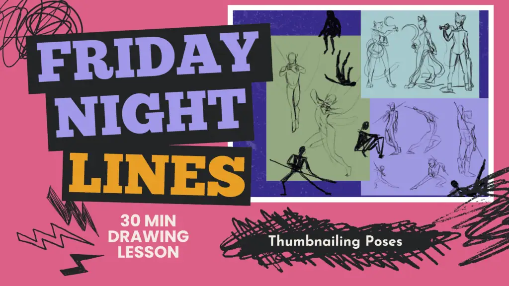 I’ll show you how this practice allows you to try a variety of poses quickly while filtering out poses that don’t work before investing time and effort into a full drawing.